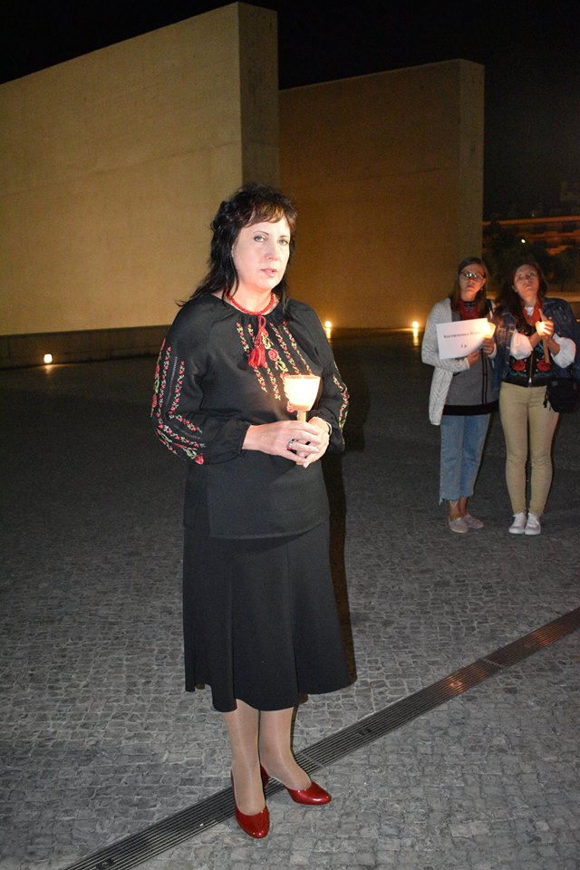 Також, з промовою виступила Посол України в Португалії І. В. Огнівець, яка розповіла про значення організованої цьогоріч по всьому світу міжнародної акції, нагадала про масштаби та наслідки, організованого радянською владою Голодомору-геноциду українського народу, а також підкреслила важливість збереження пам’яті про мільйони безвинних жертв Голодомору та передачі знань нащадкам про злочин геноциду.