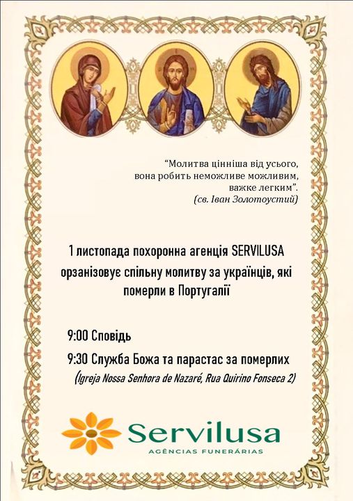1 листопада похоронна агенція SERVILUSA орзанізовує спільну молитву за українців, які померли в Португалії