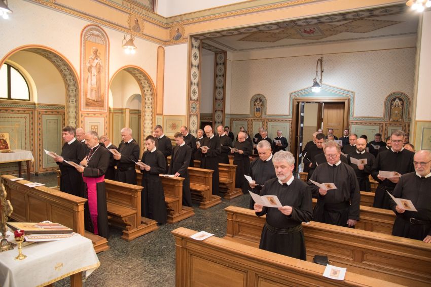 Зустріч розпочалася з вітального слова отця Протоархимандрита Роберта Лисейка. Відтак всі спільно помолилися Молебень до святого священномученика Йосафата.
